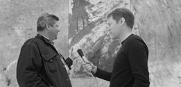 Ein professioneller Journalist nimmt mit dem Kurator (oder, wenn möglich, mit dem Künstler) eine audiovisuelle Tour durch Ihre Ausstellung auf Minidisc auf.